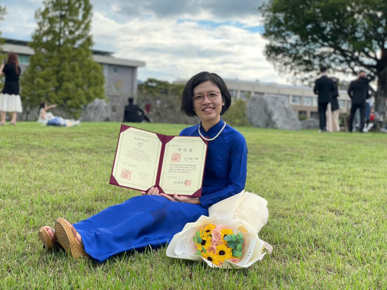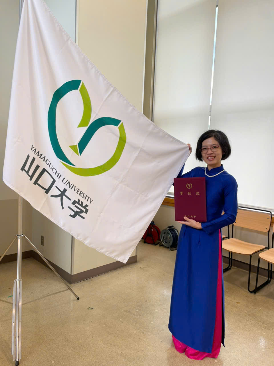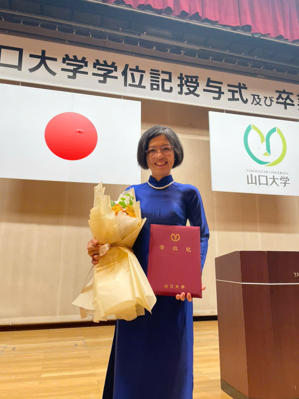 Tiến sĩ Hồ Thanh Trúc tại buổi lễ Tốt nghiệp tháng 9/2025 tại Nhật Bản.